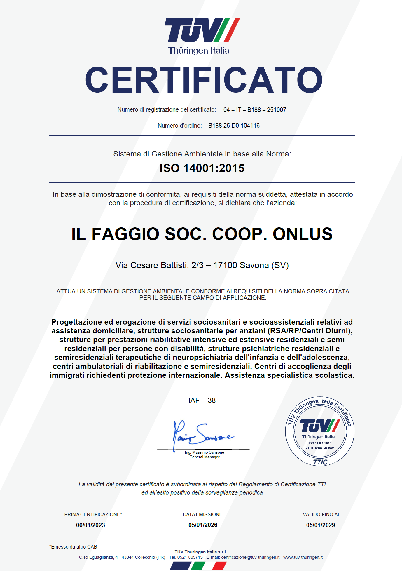 ISO 14001 (Sistema di Gestione Ambientale) fino a gennaio 2028