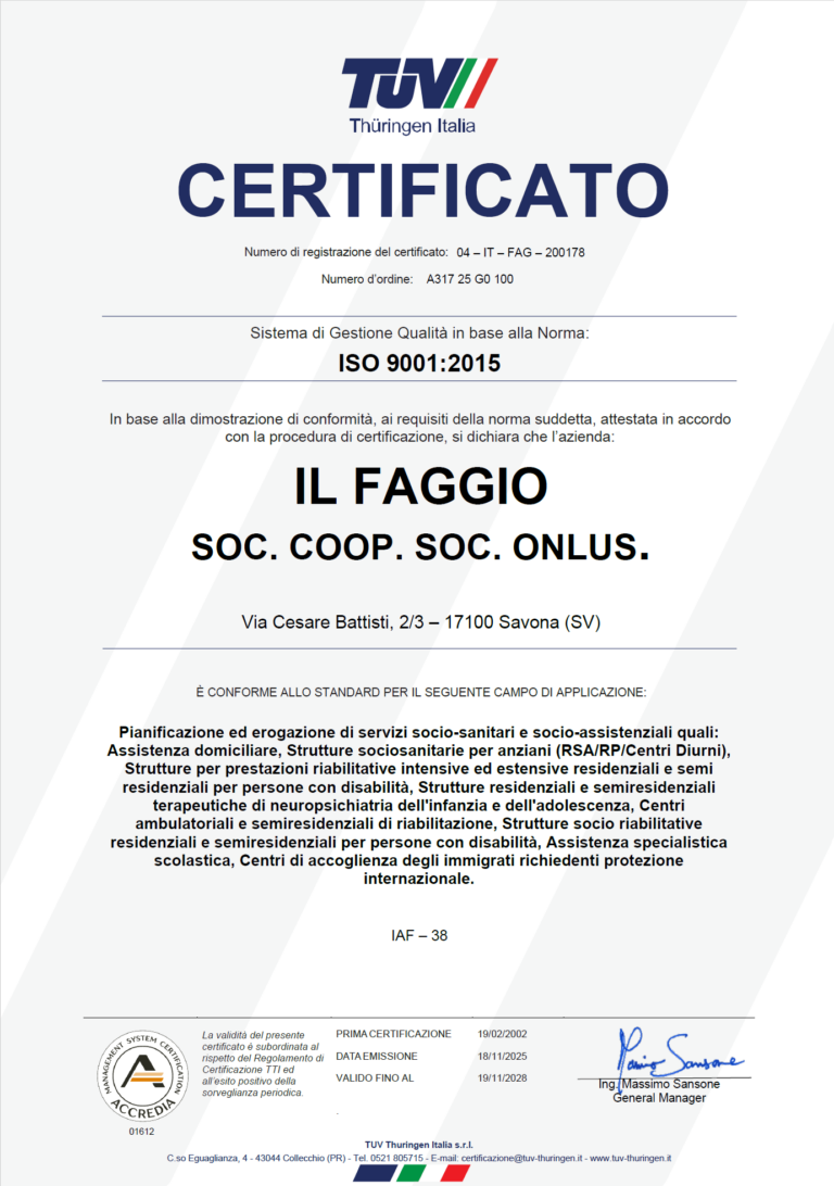 La Cooperativa Il Faggio, nel perseguimento di una politica dei servizi sempre più attenta alla qualità, alla sostenibilità e al miglioramento continuo, ha ottenuto il rinnovo triennale delle certificazioni ISO.