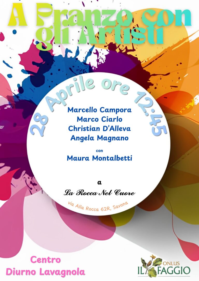 Domani, 28 aprile, alle ore 12.45, il Centro Diurno di Lavagnola organizza “Pranzo con gli artisti” presso “La Rocca nel Cuore”, in via Alla Rocca 62r a Savona.